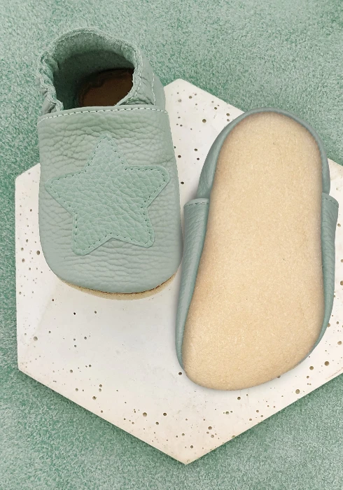 Kapcie dziecięce Barefoot PRO antypoślizgowe GWIAZDA szałwia / zielone