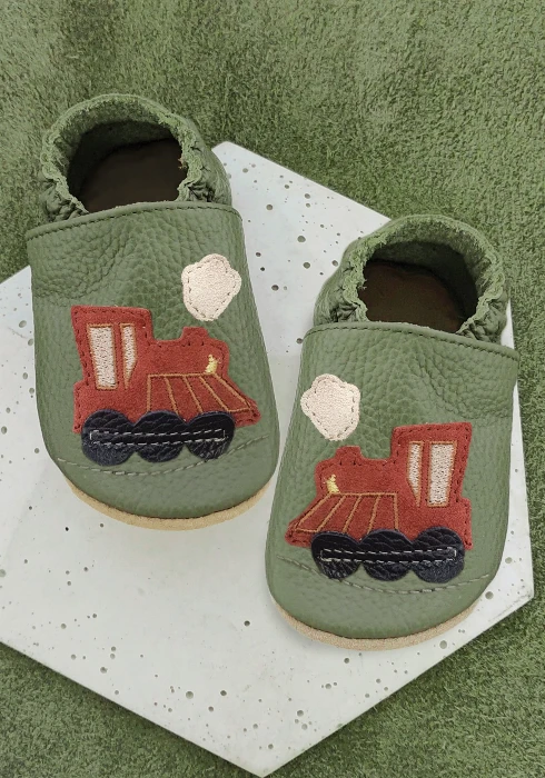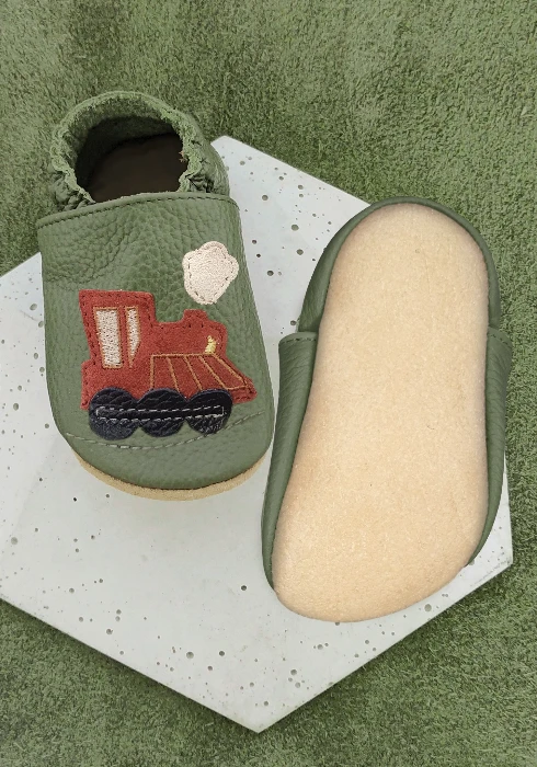 Kapcie dziecięce Barefoot PRO z antypoślizgową podeszwą z kauczuku typu ceglany POCIĄG bazylia zielone khaki