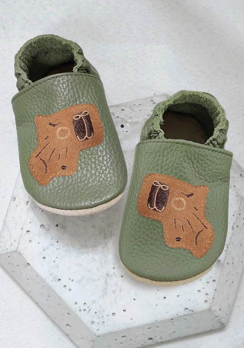 Kapcie dziecięce Barefoot SOFT z miękką podeszwą - KAPIBARA zieleń khaki