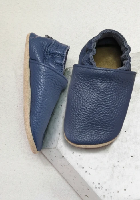 Kapcie dziecięce Barefoot SOFT z zamszową podeszwą GŁADKIE granatowe niebieskie