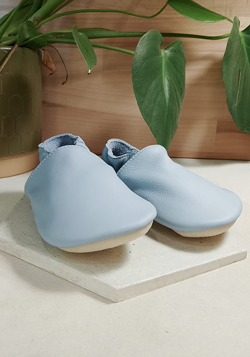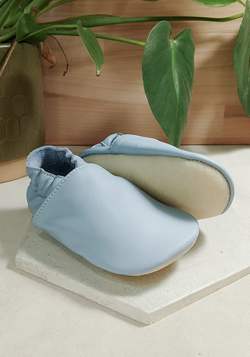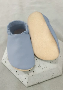 kapcie dla dzieci Barefoot PRO BŁĘKITNE NIEBIESKIE z gładkiej włoskiej skóry z kauczukową podeszwą